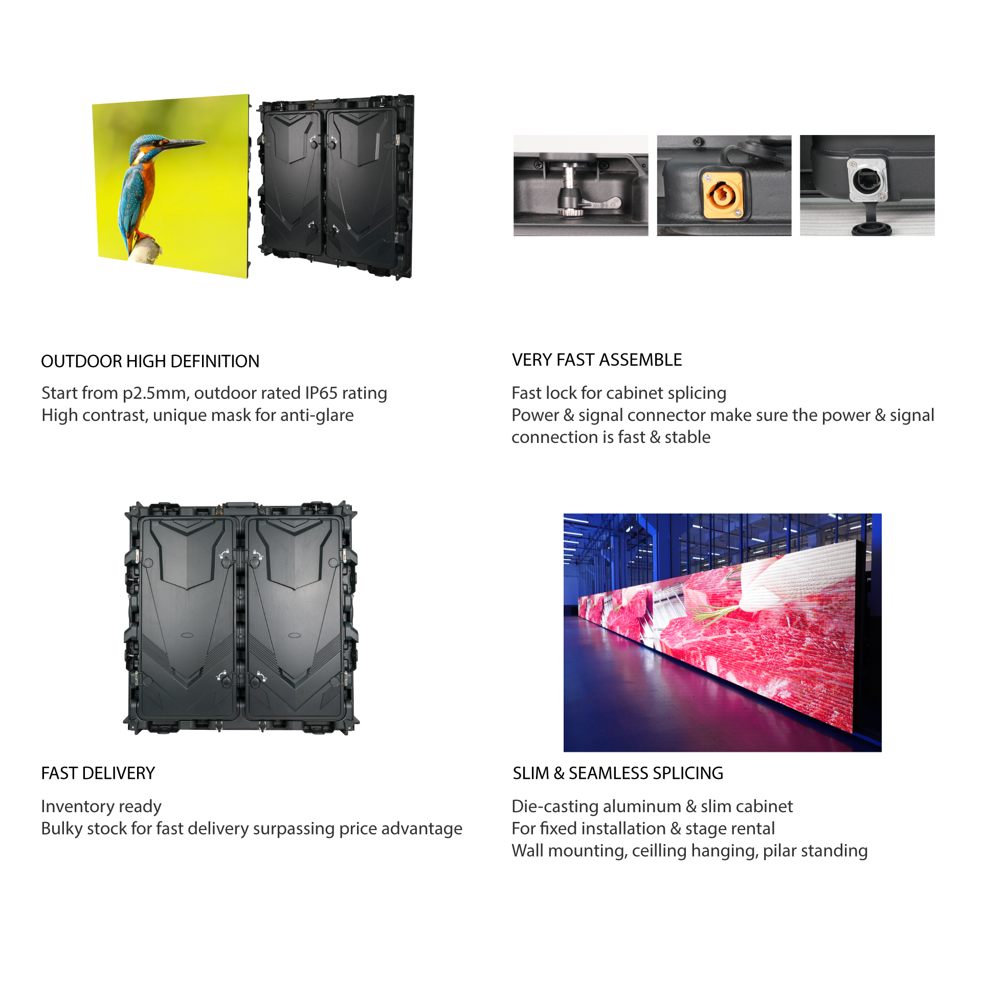 Product Introduction:HD resolution,slim and stylish die casting design. suitable for billboards, outdoor signage, and more. Ideal for outdoor applications however daylight and rainy, good precision-solid and reliable, it will eliminate the heat and minimize the temperature of